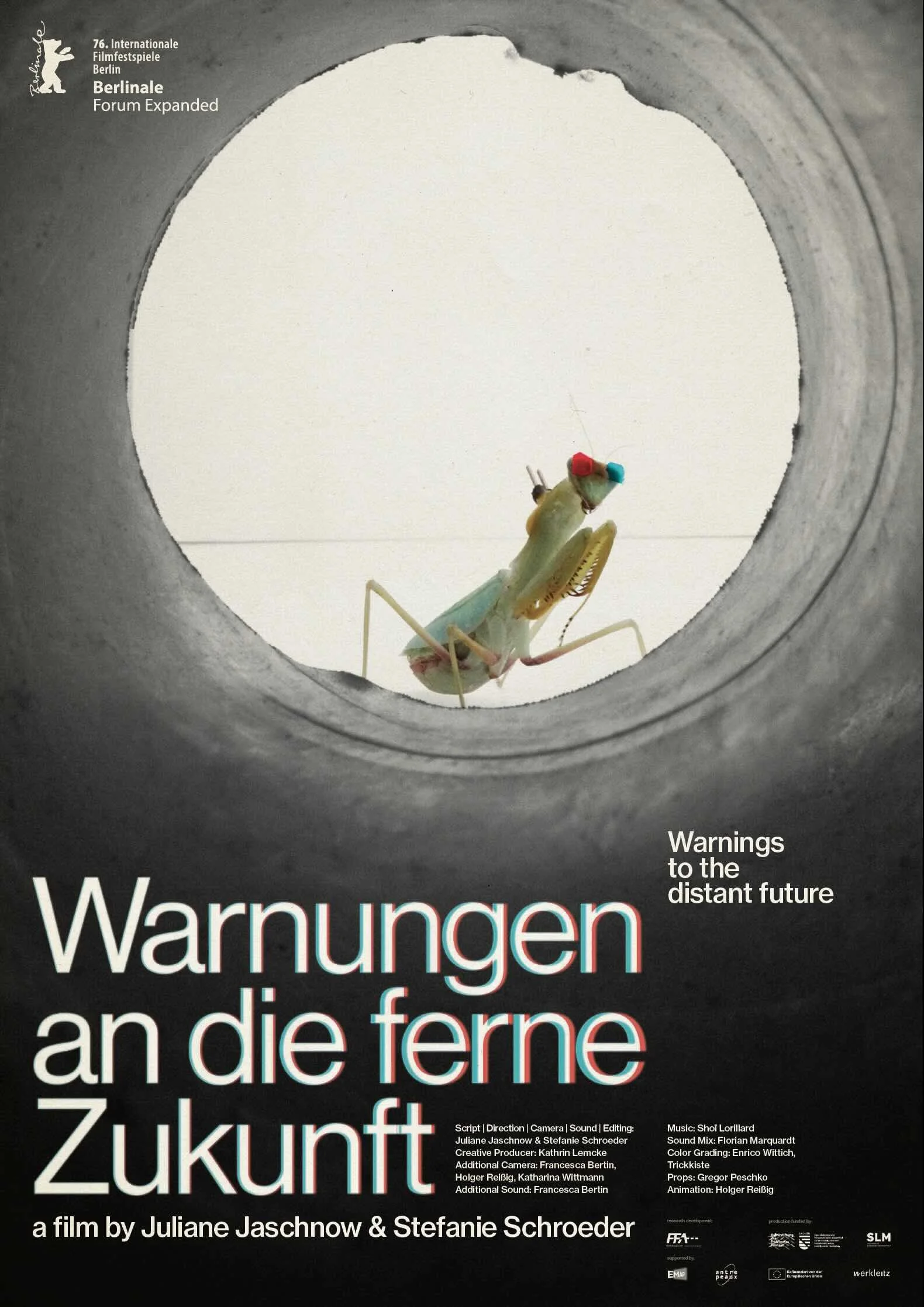 …issues, in an endless online conference with 122 participants from civil society. All the experts agree: rock is more reliable than politics. A partially three-dimensional film about the search for the East-West German nuclear waste repository, somewhere between warning signs, feedback loops, and communication problems, glowing bird flocks, and the space between sign and object: A peace steamer cruises through the Mosel vineyards—past the NATO nuclear weapons base, past the missed climate targets. The last and the penultimate generations do not meet. “We are in a climate catastrophe. Do you need mashed potatoes on a painting for you to listen?” A praying mantis, transformed into a stereoscopic pre-cyborg, gazes into a displaced past. In the Lower Rhine, a decommissioned nuclear reactor is turned into an all-inclusive amusement park. There is still no repository for highly radioactive waste, yet: “How are those who come after us supposed to be warned of danger? Isn’t there also a right to forget?”